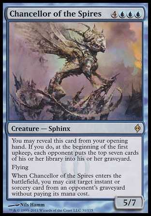 When Chancellor of the Spires enters the battlefield, you may cast target instant or sorcery card from an opponent"s graveyard without paying its mana cost.