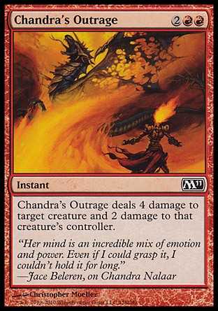 | Card Text | Chandra"s Outrage deals 4 damage to target creature and 2 damage to that creature"s controller. |