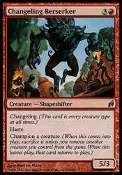 | Card Text | Changeling (This card is every creature type at all times.) Haste Champion a creature (When this enters the battlefield, sacrifice it unless you exile another creature you control. When this leaves the battlefield, that card returns to the battlefield.) |