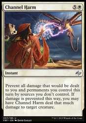| Card Text | Prevent all damage that would be dealt to you and permanents you control this turn by sources you don"t control. If damage is prevented this way, you may have Channel Harm deal that much damage to target creature. |