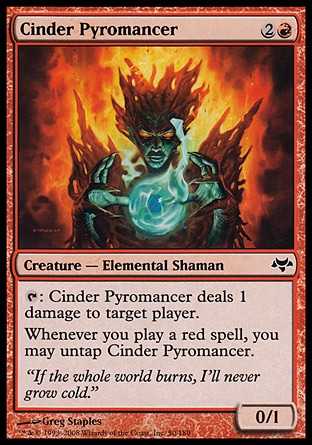 Whenever you cast a red spell, you may untap Cinder Pyromancer.