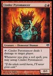 Card Text: Cinder Pyromancer deals 1 damage to target player.