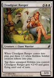 | Card Text | When Cloudgoat Ranger enters the battlefield, put three 1/1 white Kithkin Soldier creature tokens onto the battlefield. Tap three untapped Kithkin you control: Cloudgoat Ranger gets +2/+0 and gains flying until end of turn. |
