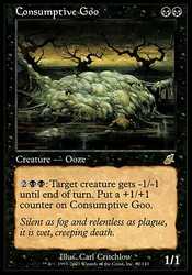 Card Text: Target creature gets -1/-1 until end of turn. Put a +1/+1 counter on Consumptive Goo.