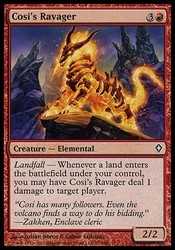 | Card Text | Landfall - Whenever a land enters the battlefield under your control, you may have Cosi"s Ravager deal 1 damage to target player. |