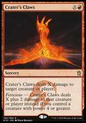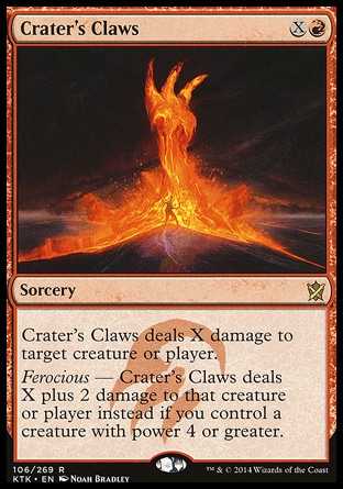| Card Text | Crater"s Claws deals X damage to target creature or player. Ferocious - Crater"s Claws deals X plus 2 damage to that creature or player instead if you control a creature with power 4 or greater. |