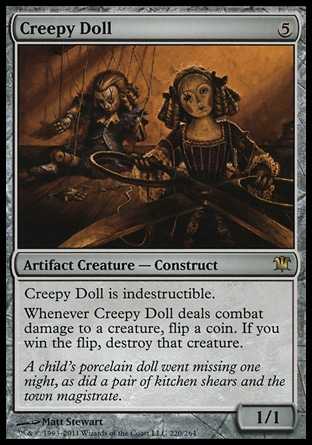 | Card Text | Indestructible Whenever Creepy Doll deals combat damage to a creature, flip a coin. If you win the flip, destroy that creature. |