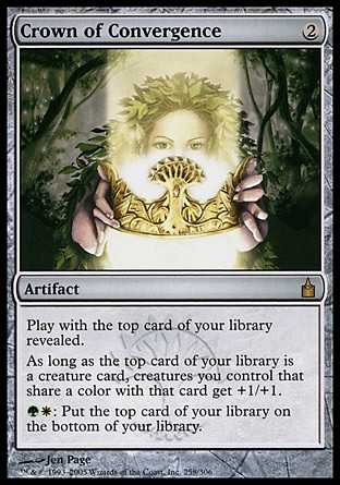 | Card Text | Play with the top card of your library revealed. As long as the top card of your library is a creature card, creatures you control that share a color with that card get +1/+1.