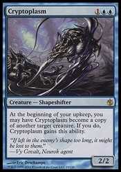 Card TextAt the beginning of your upkeep, you may have Cryptoplasm become a copy of another target creature. If you do, Cryptoplasm gains this ability.