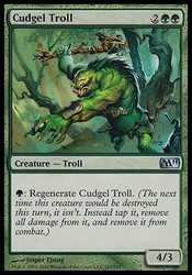 Card Text: Regenerate Cudgel Troll. (The next time this creature would be destroyed this turn, it isn"t. Instead tap it, remove all damage from it, and remove it from combat.)