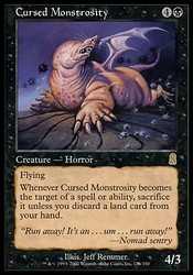 Whenever Cursed Monstrosity becomes the target of a spell or ability, sacrifice it unless you discard a land card.