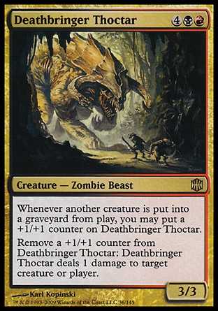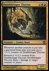 | Card Text | Whenever another creature dies, you may put a +1/+1 counter on Deathbringer Thoctar. Remove a +1/+1 counter from Deathbringer Thoctar: Deathbringer Thoctar deals 1 damage to target creature or player. |