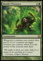 Card TextWhenever a creature you control dies, put X +1/+1 counters on target creature you control, where X is the power of the creature that died.