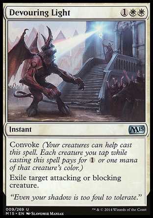 | Card Text | Convoke (Your creatures can help cast this spell. Each creature you tap while casting this spell pays for or one mana of that creature"s color.)Exile target attacking or blocking creature. |