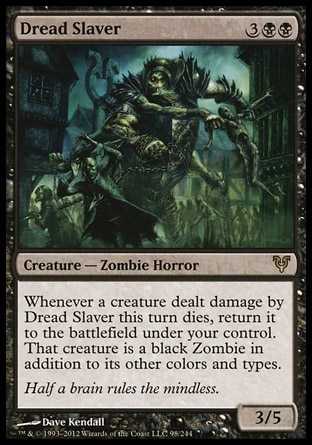 | Card Text | Whenever a creature dealt damage by Dread Slaver this turn dies, return it to the battlefield under your control. That creature is a black Zombie in addition to its other colors and types. |