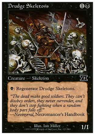 | Card Text | : Regenerate Drudge Skeletons. (The next time this creature would be destroyed this turn, it isn"t. Instead tap it, remove all damage from it, and remove it from combat.) |