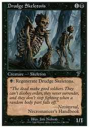 Card Text: Regenerate Drudge Skeletons. (The next time this creature would be destroyed this turn, it isn"t. Instead tap it, remove all damage from it, and remove it from combat.)