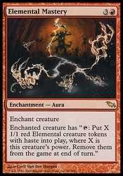 Enchanted creature has : Put X 1/1 red Elemental creature tokens with haste onto the battlefield, where X is this creature"s power. Exile them at the beginning of the next end step.
