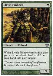 Card TextWhen Elvish Pioneer enters the battlefield, you may put a basic land card from your hand onto the battlefield tapped.