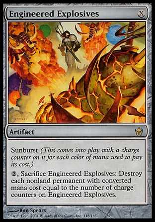 , Sacrifice Engineered Explosives: Destroy each nonland permanent with converted mana cost equal to the number of charge counters on Engineered Explosives.