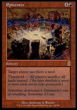 | Card Text | Target player sacrifices a land. Threshold - Each player sacrifices all lands he or she controls instead if seven or more cards are in your graveyard. |