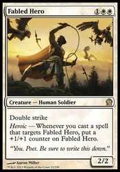 | Card Text | Double strike Heroic - Whenever you cast a spell that targets Fabled Hero, put a +1/+1 counter on Fabled Hero. |