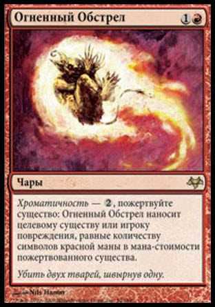 | Card Text | Chroma - , Sacrifice a creature: Fiery Bombardment deals damage to target creature or player equal to the number of red mana symbols in the sacrificed creature"s mana cost. |