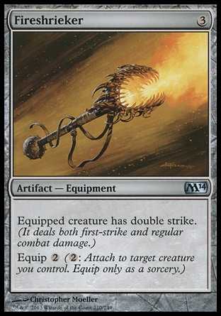 Card TextEquipped creature has double strike. (It deals both first-strike and regular combat damage.)