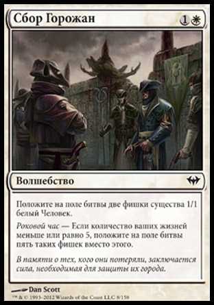 | Card Text | Put two 1/1 white Human creature tokens onto the battlefield. Fateful hour - If you have 5 or less life, put five of those tokens onto the battlefield instead. |