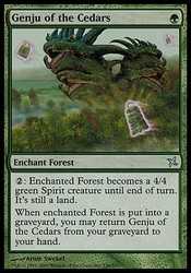 When enchanted Forest is put into a graveyard, you may return Genju of the Cedars from your graveyard to your hand. |