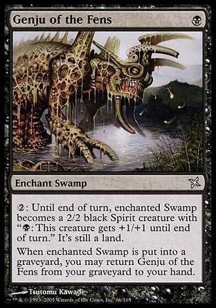 | Card Text | Enchant Swamp When enchanted Swamp is put into a graveyard, you may return Genju of the Fens from your graveyard to your hand. |