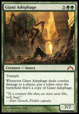 | Card Text | Trample Whenever Giant Adephage deals combat damage to a player, put a token onto the battlefield that"s a copy of Giant Adephage. |