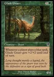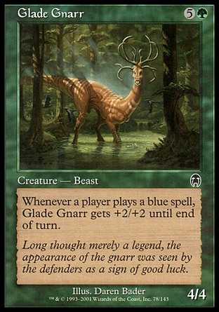 | Card Text | Whenever a player casts a blue spell, Glade Gnarr gets +2/+2 until end of turn. |