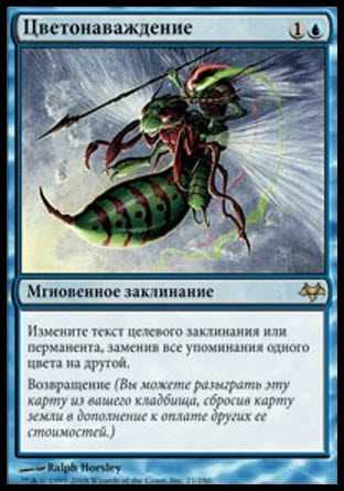 | Card Text | Change the text of target spell or permanent by replacing all instances of one color word with another. Retrace (You may cast this card from your graveyard by discarding a land card in addition to paying its other costs.) |