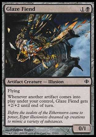 | Card Text | Flying Whenever another artifact enters the battlefield under your control, Glaze Fiend gets +2/+2 until end of turn. |
