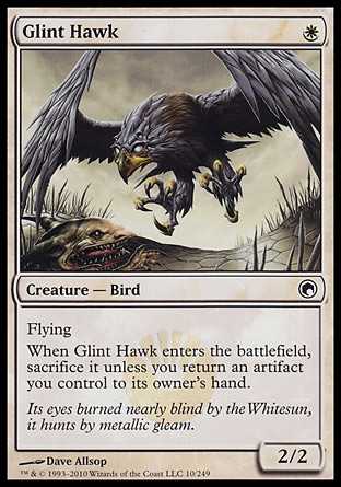 When Glint Hawk enters the battlefield, sacrifice it unless you return an artifact you control to its owner"s hand.
