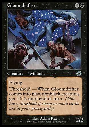 Threshold - As long as seven or more cards are in your graveyard, Gloomdrifter has When Gloomdrifter enters the battlefield, nonblack creatures get -2/-2 until end of turn.