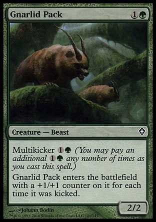 | Card Text | Multikicker ![]() (You may pay an additional ![]() any number of times as you cast this spell.)Gnarlid Pack enters the battlefield with a +1/+1 counter on it for each time it was kicked. |