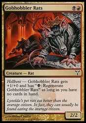 | Card Text | Hellbent - As long as you have no cards in hand, Gobhobbler Rats gets +1/+0 and has : Regenerate Gobhobbler Rats. |