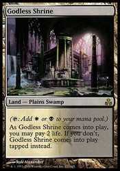 As Godless Shrine enters the battlefield, you may pay 2 life. If you don"t, Godless Shrine enters the battlefield tapped.