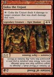 | Card Text | : Goka the Unjust deals 4 damage to target creature that was dealt damage this turn. |