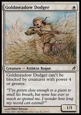 | Card Text | Goldmeadow Dodger can"t be blocked by creatures with power 4 or greater. |
