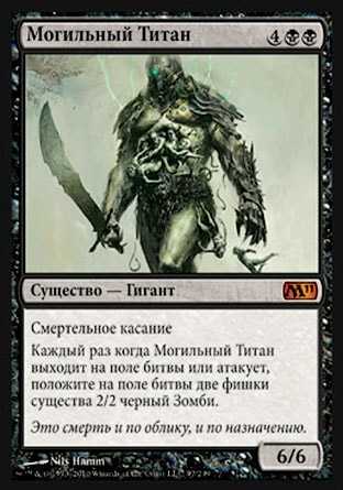 | Card Text | Deathtouch Whenever Grave Titan enters the battlefield or attacks, put two 2/2 black Zombie creature tokens onto the battlefield. |