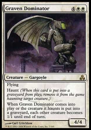 | Card Text | Flying Haunt (When this creature dies, exile it haunting target creature.) When Graven Dominator enters the battlefield or the creature it haunts dies, each other creature has base power and toughness 1/1 until end of turn. |