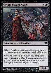 | Card Text | When Grixis Slavedriver leaves the battlefield, put a 2/2 black Zombie creature token onto the battlefield. Unearth |