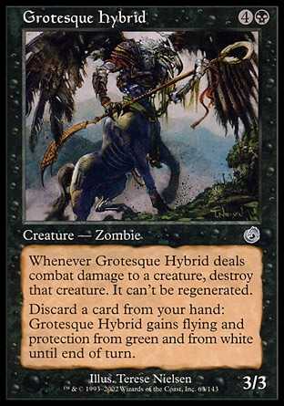 Card TextWhenever Grotesque Hybrid deals combat damage to a creature, destroy that creature. It can"t be regenerated.