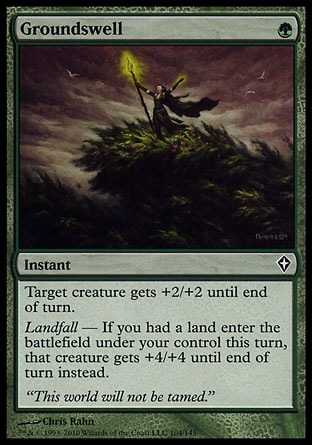 Landfall - If you had a land enter the battlefield under your control this turn, that creature gets +4/+4 until end of turn instead.