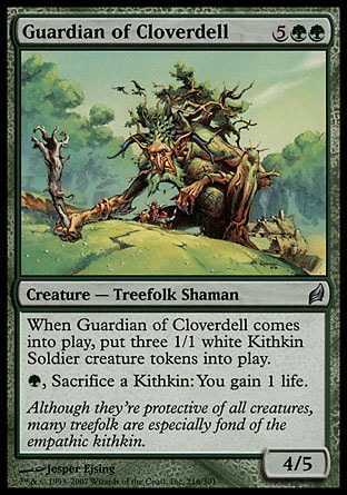 Card TextWhen Guardian of Cloverdell enters the battlefield, put three 1/1 white Kithkin Soldier creature tokens onto the battlefield.