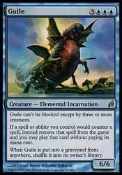 | Card Text | Guile can"t be blocked except by three or more creatures. If a spell or ability you control would counter a spell, instead exile that spell and you may play that card without paying its mana cost. When Guile is put into a graveyard from anywhere, shuffle it into its owner"s library. |