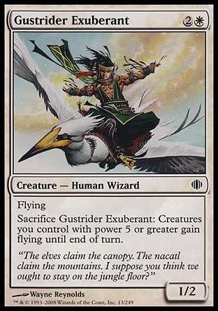 Sacrifice Gustrider Exuberant: Creatures you control with power 5 or greater gain flying until end of turn.